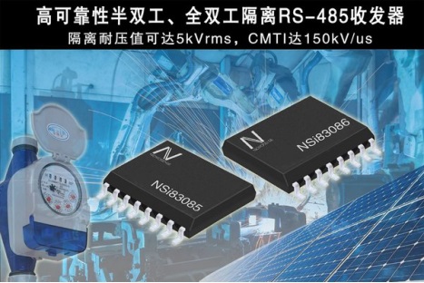中國領先的信號鏈芯片及解決方案提供商蘇州納芯微電子股份有限公司宣布推出 NSi83085 及 NSi83086 兩款高可靠性半雙工、全雙工隔離 RS-485 收發器,其數字隔離產品線擴充至包含標準數字隔離、IC 數字隔離及隔離 RS-485 在內的多款產品。此外,納芯微電子宣布通過 UL1577 認證的窄體封裝 NSi81xx 系列數字隔離器產品目前已全面穩定量產。