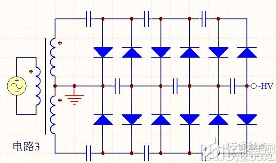 這三個電路都是6倍電壓泵電路,各有特點。我們通常稱每2倍為一階,用N表示,上述電路都是3階,即N=3。如果希望輸出電壓極性不同,只要將所有的二極管反向就可以了。