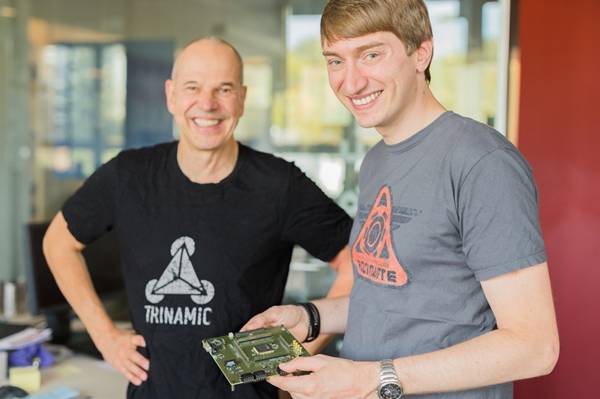 TRINAMIC首席執行官Michael Randt和 Onno Martens博士展示全球首款RISC-V電機驅動器芯片