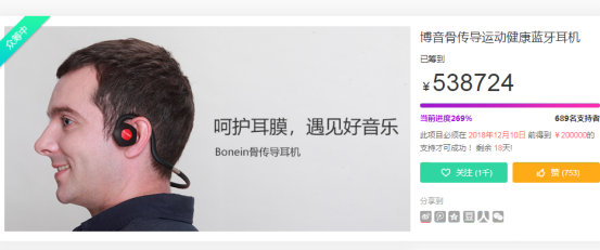 最近在京東眾籌平臺發現一款骨傳導耳機——Bonein骨傳導耳機,在短短幾天的時間里就籌到了50萬的金額,不得不讓人感慨骨傳導耳機的火熱。那骨傳導耳機為為什么這么火熱呢?相比較傳統的耳機,骨傳導耳機又有什么獨特的優勢呢?