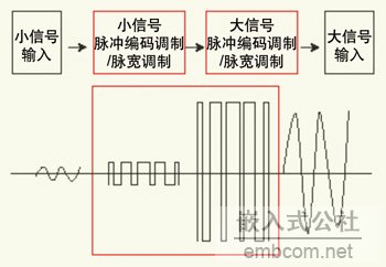 其次,對音頻部分來說,主要是音頻放大器件(Audio Amplifier),現有的功率放大器有A類、B類、AB類和D類,這其中D類放大器的效率最高,A類、B類和AB類線性放大器輸出級都需要提供不小的 偏置電流。其中A類放大器的效率最低一般不用。而D類放大器不需要偏置電流,所以具有較高的效率,能夠大大延長電池壽命。所以在便攜式電子產品中D類放大 器應該是最好的選擇。但是因為成本上現在D類放大器還沒有優勢,所以大部分的便攜式電子產品中還是采用的多是AB類放大器。下面重點介紹一下AB類和D類 放大器比較D類放大器的效率優勢。典型的AB類放大器效率最高只能達到50-70%,而典型的D類放大器與之相比,效率可達85%,尤其是在低功率輸出方 面D類放大器比AB類放大器能儲存更多的能量。即使是全功率或低功率輸出,效率方面也更為突出。基本的D類放大器理論(如圖1)是給定的小模擬信號作為功 率放大器的輸入。功率放大器內部調制器將模擬轉換成數字信號(所以在某種意義上來說它是一種數字攻放),如脈寬調制(PWM),但它仍然是一個微弱的數字 信號。然后,橋接放大器將數字信號的振幅放大。然后將高幅度數字信號轉換回模擬輸出。在這種情況下,放大器就可以完全工作在開關狀態,在開關狀態晶體管的 效率是很高的,因為在完全導通的時候晶體管的電流很大,但是電壓很小;在截至的時候加在晶體管的電壓很高,但是流過得電流很小。同時在沒有音頻信號時使晶 體管完全工作在截至狀態,這樣就可以盡量得減少功率的損耗,使其工作在高效的狀態。在這里如果采用 D類放大器則可以比AB類的效率提高一倍。這類放大器正在越來越多的被應用在便攜式產品中。在便攜式 DVD中已經被大量采用。