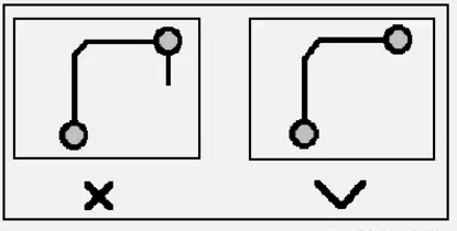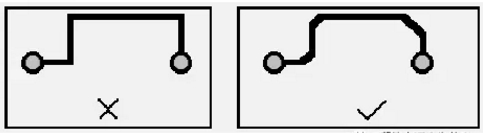 PCB設計中應避免產生銳角和直角, 產生不必要的輻射,同時工藝性能也不好。