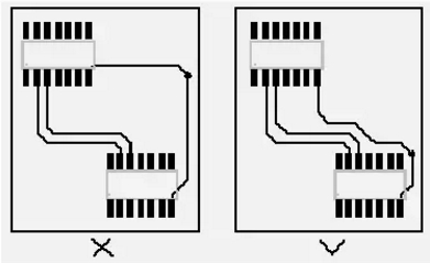 即短線規(guī)則,在設計時應該盡量讓布線長度盡量短,以減少由于走線過長帶來的干擾問題,特別是一些重要信號線,如時鐘線,務必將其振蕩器放在離器件很近的地方。對驅動多個器件的情況,應根據(jù)具體情況決定采用何種網絡拓撲結構。