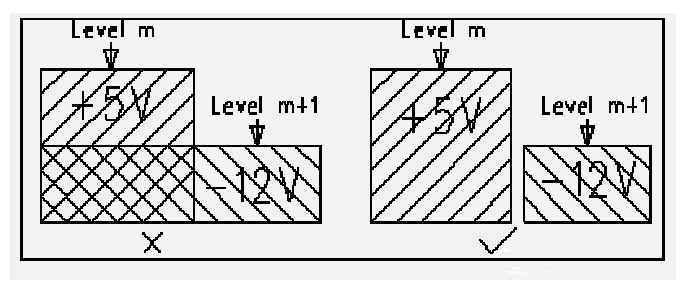 不同電源層在空間上要避免重疊。 主要是為了減少不同電源之間的干擾, 特別是一些電壓相差很大的電源之間, 電源平面的重疊問題一定要設法避免, 難以避免時可考慮中間隔地層。