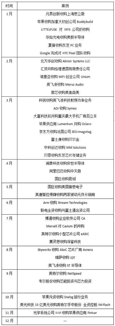 由于近兩年國家層面高度關注半導體行業的發展,在政策傾斜、資金補貼、技術轉讓、人才獲取等多方位支持,并且中國政府已將半導體產業發展提升至國家戰略高度,并針對設計、制造、封測各環節制定明確計劃。物聯網、可穿戴設備、云計算、大數據、新能源、醫療電子和安防電子等新興應用發展迅速,這些領域得到了資本的青睞,從編者整理的并購案例來看,多數并購主要集中在上述領域,不難看出未來幾年半導體行業將迎來發展高峰期。總的來看這些企業之間的并購也多是為了強化自身在某個領域的技術實力或提前布局未來新興產業,這也是企業間并購發生的內在原因。編者相信隨著相關領域產業的進一步成熟,未來一定會有更多有著重大影響并購發生,也會有更多的國內企業出現在各并購案中。