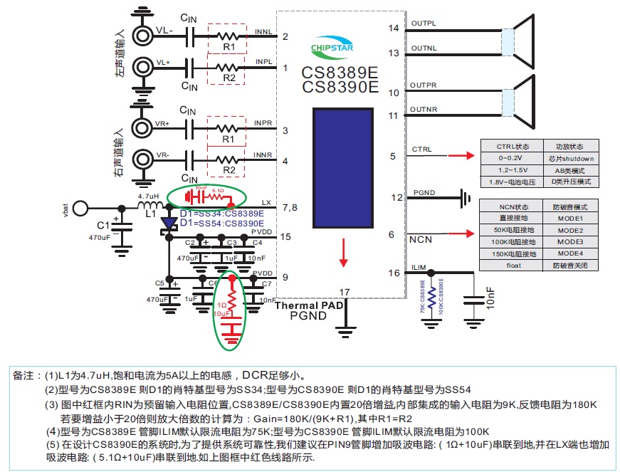 | CS8389E/CS8390E 內置升壓4.8W、6.6W雙聲道音頻功放IC PCB Layout注意事項 |
