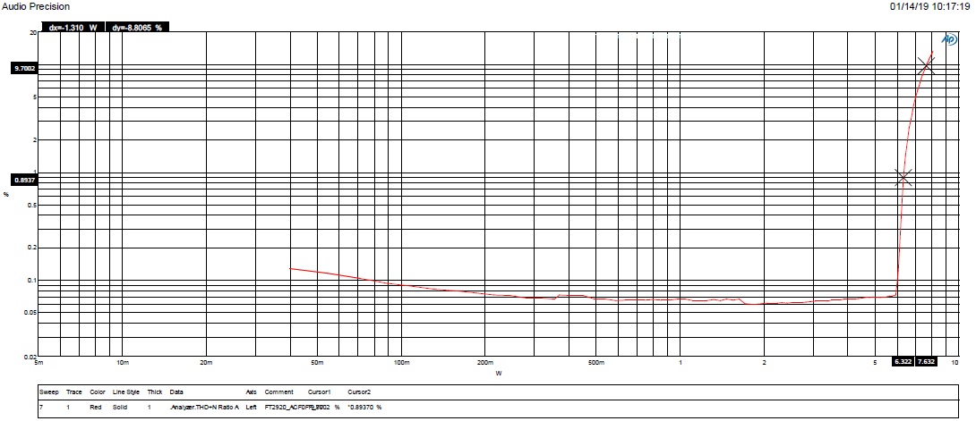 FT2920 防破音關(guān)閉輸出功率:6.32W/THD=1%;7.63W/THD=10%;