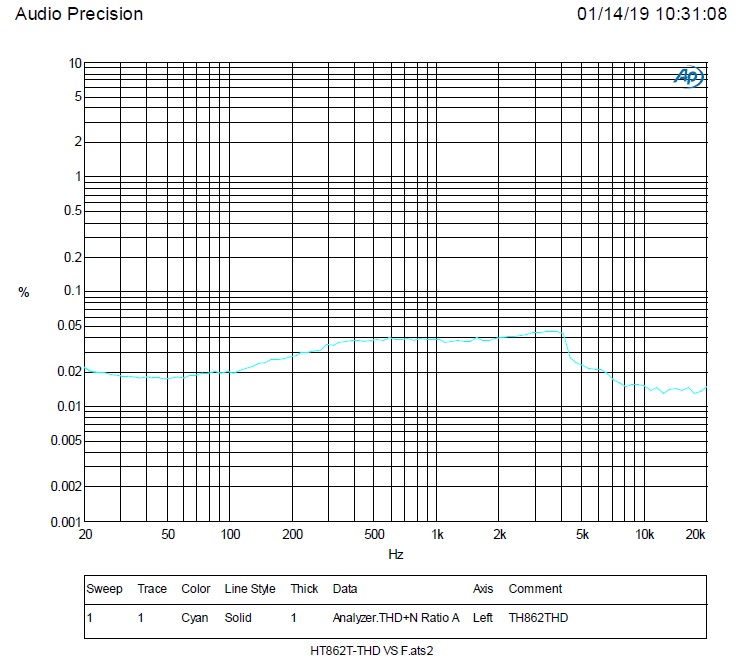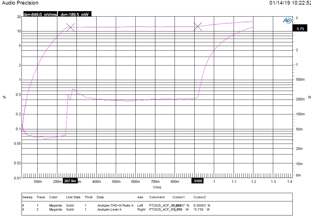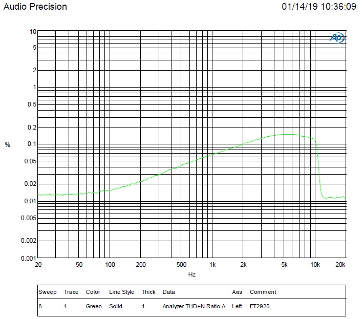 低頻FT2920比HT862T失真度;中頻兩者接近;高頻HT862T比FT2920好。全頻段HT862T失真在0.04%以內(nèi),F(xiàn)T2920失真度超過(guò)0.1%;