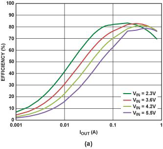 圖 5. ADP2138的效率:(a) 連續 PWM模式;(b) PSM模式