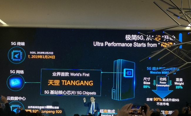 1月24日,華為在北京研究所發布業界首款5G芯片:天罡芯片。據華為介紹,該芯片支持200M頻寬頻帶,預計可以把5G基站重量減少一半。