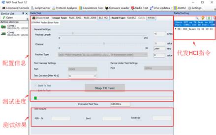 打開NXP提供的上位機工具Test Tool 12,選擇好com口、配置好測試信息,點擊開始測試,然后坐等測試結果即可。