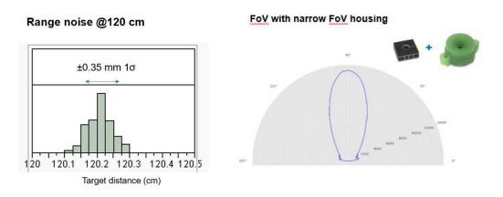圖 2:CH-201 型傳感器的距離噪音僅為傳統紅外 ToF 傳感器的百分之一(左圖)。