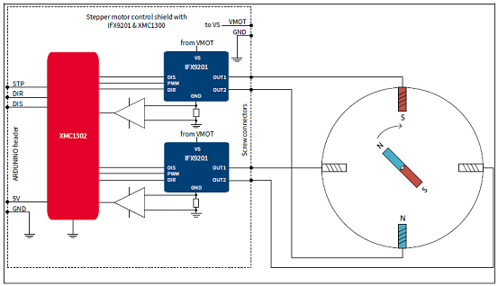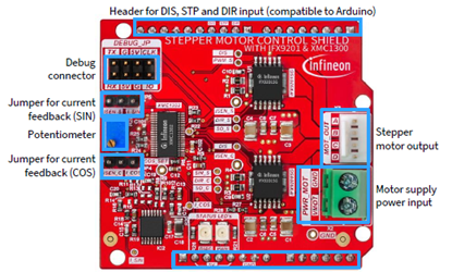 圖9.采用IFX9201和XMC1300的步進馬達驅動擴展板概述圖