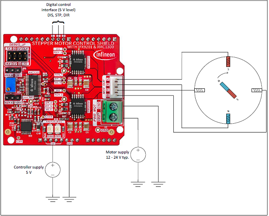 圖12.步進馬達驅動擴展板:XMC1302連接概述圖