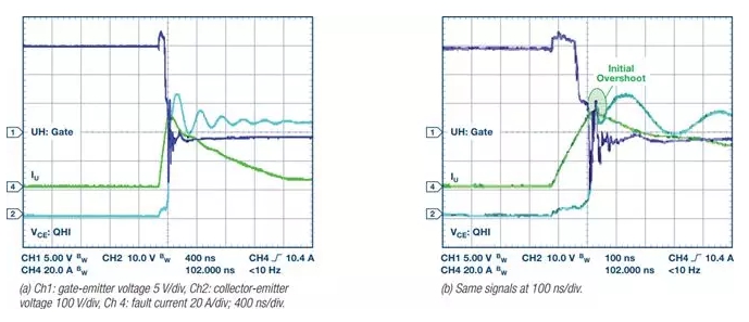 無論出于財產損失還是安全方面的考量,針對過流條件的IGBT保護都是系統可靠性的關鍵所在。IGBT并非是一種故障安全元件,它們若出現故障則可能導致直流總線電容爆炸,并使整個驅動出現故障。過流保護一般通過電流測量或去飽和檢測來實現。
