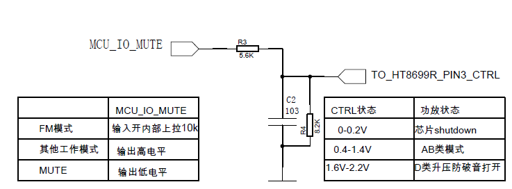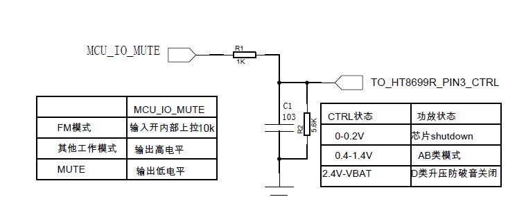 HT8691R能通過一個(gè)主控IO口實(shí)現(xiàn)關(guān)斷、開啟、D類/AB類、防破音開啟/關(guān)閉等各種模式的切換,節(jié)省藍(lán)牙主控的資源,外圍簡(jiǎn)單。