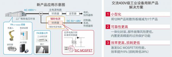 近年來,隨著節能意識的提高,在交流400V工業設備領域,相比現有的Si功率半導體,可支持更高電壓、更節能、更小型的SiC功率半導體的應用越來越廣。而另一方面,在工業設備中,除了主電源電路之外,還內置有為各種控制系統提供電源電壓的輔助電源,輔助電源中廣泛采用了耐壓較低的Si-MOSFET和損耗較大的IGBT,在節能方面存在很大課題。