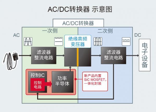 在高耐壓范圍中,SiC MOSFET與Si-MOSFET相比,具有“開關損耗與導通損耗小”、“可支持大功率”、“耐溫度變化”等優勢。基于這些優勢,當SiC-MOSFET用于AC/DC轉換器和DC/DC轉換器等中時,可帶來更高的功率轉換效率、散熱器件的小型化、高頻工作使線圈更小等好處,具有更節能、部件數量更少、安裝面積更小等效果。
