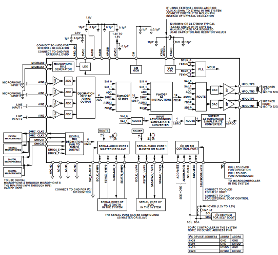 2,16-channel serial audio ports supporting I2S, left justified,or up to TDM16