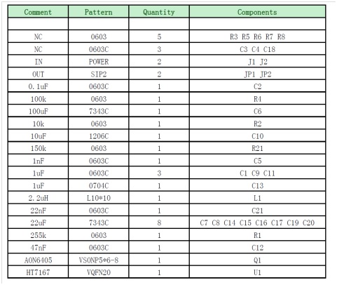 ⑦.HT7167 DEMO板物料清單