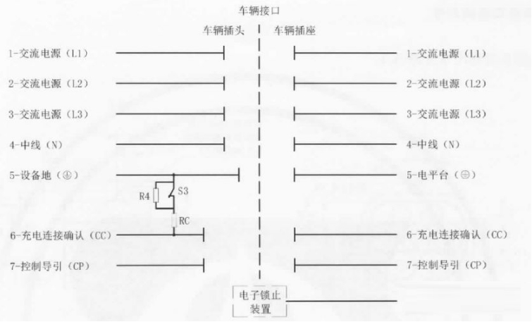 這里面其實隱藏了充電槍的電子鎖部分說明;充電槍上面有機械鎖和電子鎖,在插槍后,首先機械鎖先鎖住充電槍(就是卡扣,注意但此時仍可以手動拔出的),再用電子鎖進行鎖止(再用手拔就不能拔出了),這個電子鎖的控制信號是除了充電接口的7個PIN針外額外的信號,可以由VCU或BMS等控制,也需要我們設計控制電路。