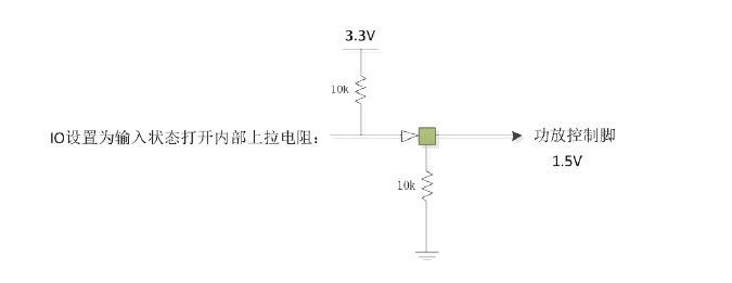 現在主控IO口很少,IO口設置成輸入狀態的時候使能內部上拉電阻(比如10k),那么一個IO口可以做到有三種狀態。靜音關斷,D類,AB類,一個IO口就可以搞定。外圍只接一個下拉電阻,等效電路如下: