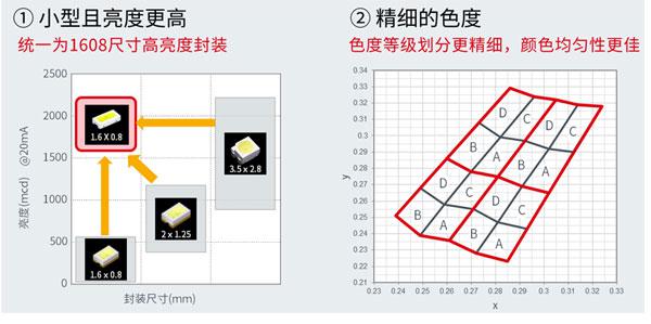 這使得汽車內(nèi)飾照明光源曾經(jīng)使用的大型封裝LED可以統(tǒng)一為1608大小的小型封裝。(圖6)