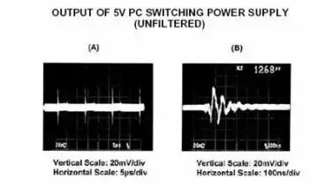 開關(guān)電源是一個很嚴(yán)重的噪聲源,下圖是典型的開關(guān)電源輸出端的電壓波形:
