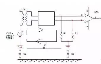 通過空間磁場耦合到具有一定環(huán)路面積的信號回路或地線環(huán)中,造成對信號的影響。另外來自開關(guān)電源或市電網(wǎng)絡(luò)的高頻干擾可能通過空間雜散電容直接耦合到信號回路。