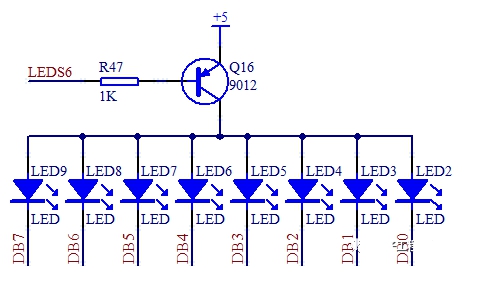 那么上邊的 R47 的阻值我們必須要來計算一下了。剛才我們算過了,e 和 c 之間的電流是 3mA,那么 b 極電流最小就是 3mA 除以 100 等于30uA,大概有 4.3V 電壓會落在基極電阻上,那么基極電阻最大值就是 4.3V/30uA = 143K。電阻值只要比這個值小就可以,當然也不能太小,太小會導致單片機的 IO 口電流過大燒壞三極管或者單片機,STC89C52 的 IO 口輸入電流最大理論值是 25mA,我推薦不要超過 6mA,我們用電壓和電流算一下,就可以算出來最小電阻值,我們圖 3-7 取的是經驗值。 |