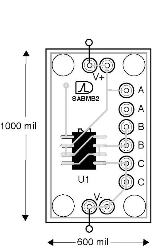 圖3:尺寸為0.6×1英寸的SABMB2線路板的方框圖,用于超級電容器自動平衡