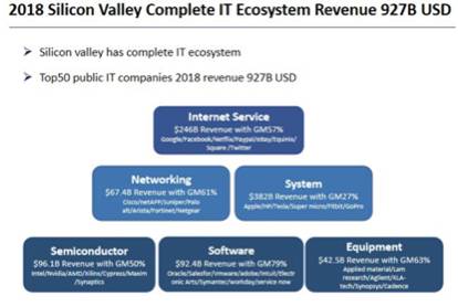 華創投資管理基金投委會主席陳大同指出:“從上個世紀50年代到70年代,硅谷經過幾十年形成一套成熟系統——風險投資體系。硅谷的風險投資體系包括:開始只有技術時,如何估值;有產品沒銷售時,如何估值;有銷售時,如何估值;IPO時,如何估值。相應地,還有配套的律師服務、工資管理、董事會、事中審計等。這套體系,是硅谷最具價值的核心。”