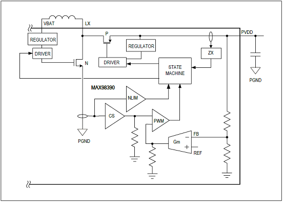 圖2.MAX98390升壓轉(zhuǎn)換器框圖