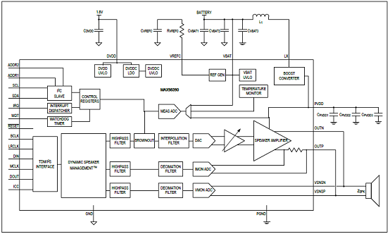 圖1.MAX98390簡(jiǎn)化框圖