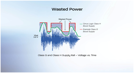 功效- SAR Insight研究還證實,由于D類音頻放大器的效率提升,D類在許多市場上幾乎都取代了AB類放大器。在設計中也可以實現更高的功效。例如,Cirrus Logic的11伏升壓D類放大器也使用H類DC-DC轉換器,以比G類更高的效率增強供應,同時額外的電池管理系統可預測地適應不斷變化的音頻、喇叭和電池情況以調節電池電流和節省電力。這強調了升壓音頻放大器不斷演進的技術和“增強”作用,如圖2所示。