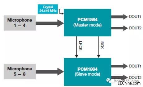 在采用多麥克風設計和語音識別時,我們也無需重新設計。基于PCM1864 的TI 圓形麥克風板(CMB) 參考設計(如圖 3 所示)使用兩個 4 通道音頻ADC 與一組模擬麥克風(最多含八個)連接,并且可以在嘈雜的環境中提取清晰的用戶語音指令。