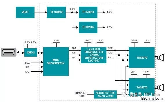 數字輸入、D 類、IV 感應音頻放大器的立體聲評估模塊參考設計(如圖 4 所示)不僅接受多種格式的數字輸入并提供高質量音頻,其 D 類拓撲還包括其他功能, 可以最大程度地降低多個輸出級別的功耗,而不會降低保真度和性能。