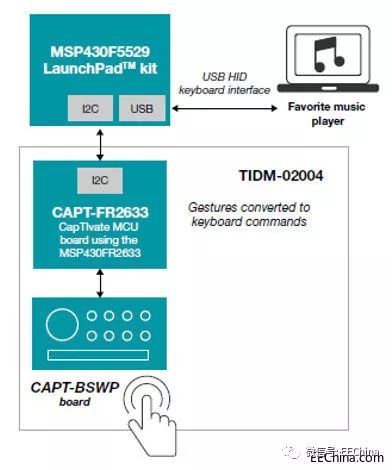 基于手勢的電容式觸控揚聲器界面參考設計(如圖 7 所示)提供了一種易于使用的評估系統,用于使用 TI 電容式觸控MCU 的智能揚聲器的多手勢電容式觸控界面。此設計支持點擊、輕滑、滑動和旋轉手勢。