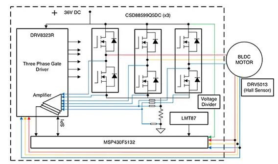 圖 2:基于 TI MSP 430 微控制器的 BLDC 電機(jī)控制示意圖。(圖片來(lái)源:Texas Instruments)