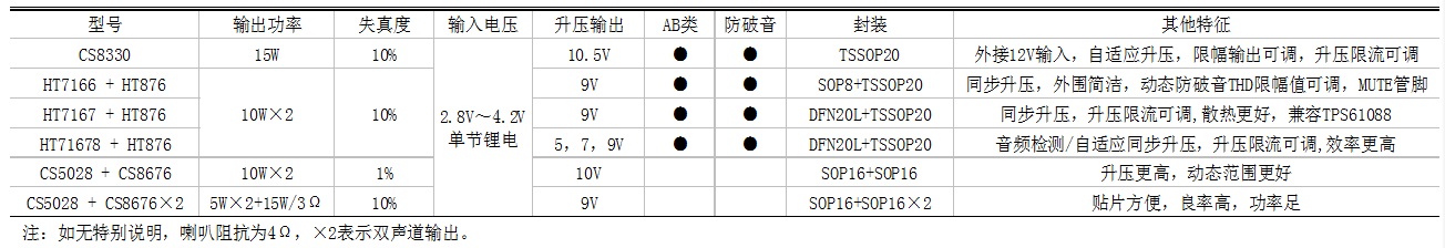 3.7V單節(jié)鋰電升壓+功放IC選型表