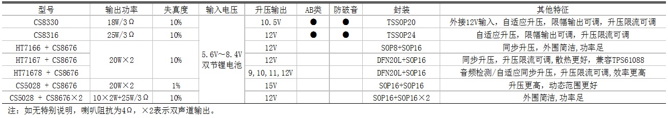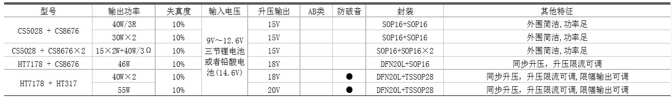 3節(jié)鋰電/12V鉛酸電池升壓+功放IC選型表
