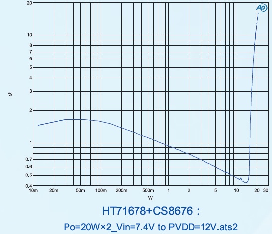 PO at 10% THD+N, VIN=3.7V RL=4Ω+22uH 15W(D MODE NCN OFF) PO at 10% THD+N, VIN =7.4V RL=4Ω+22uH 15W(D MODE NCN OFF) |