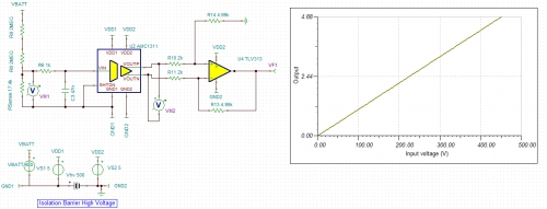 圖5圖示為選用防護放大器和運算放大器的防護工作電壓感測。防護放大器防護熱側和冷側,并輸出收獲為1的差分信號。運算放大器將差分信號變換為單端輸出,并使ADC收獲考慮全動態范圍。該工作電壓被饋送到冷側MCU中的ADC。