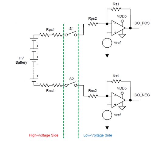 比如,當S1關掉時,假如在負級側無滲漏,則ISO_POS工作電壓將相當于Vref。若在負級側存有泄露電流(防護毀壞),則ISO_POS工作電壓將不一定Vref。因為泄露電流穿過Rps1、Rps2和Rs1、充電電池的正級側和負級側到底壓側接地裝置,閉環控制收獲不一樣。具備低鍵入參考點電流量的運算放大器適用此運用,由于聯接到反相鍵入的特性阻抗將會十分高(在兆歐范圍之內)。