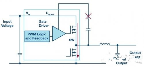圖1.對開關(guān)模式電源進行開關(guān)轉(zhuǎn)換,在開關(guān)節(jié)點處施加輸入電壓。