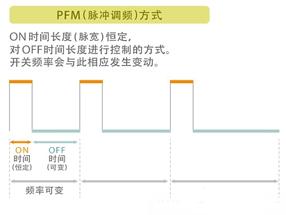 圖2:PWM(脈沖調幅)方式與PFM(脈沖調頻)方式
