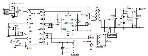 安森美半導(dǎo)體將NCP1568和NCP51530搭配,通過結(jié)合一個(gè)高能效的拓?fù)?ACF)和減小器件大小的高頻工作,滿足當(dāng)前市場的需求。雖然這些優(yōu)勢是通過可靠的和已證實(shí)的硅基超級(jí)結(jié)FET實(shí)現(xiàn)的,但只要成熟,該方案也兼容GaN器件。