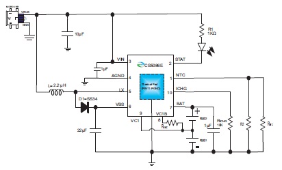 (1) CS5090E-----5V USB輸入,最大1.5A充電電流,帶NTC,7.4V鋰電升壓充電管理電路