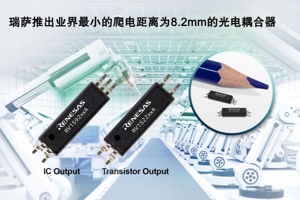 全球領先的半導體解決方案供應商瑞薩電子株式會社(TSE:6723)今日宣布推出五款全新8.2mm爬電式光電耦合器,是業界尺寸最小的用于工業自動化與太陽能逆變器的隔離設備。RV1S92xxA和RV1S22xxA光電耦合器的封裝寬度僅為2.5mm,與其他品牌產品相比,可將PCB占板面積減少35%,從而幫助設計師縮小設備尺寸、增加機械臂軸并提高車間生產率。該產品還可滿足受限空間內安裝多個更小型太陽能設備的零能耗建筑的需求。RV1S92xxA與RV1S22xxA光電耦合器非常適用于直流-交流電源逆變器、交流伺服電機、可編程邏輯控制器(PLC)、機械臂、太陽能逆變器以及電池存儲和充電系統。