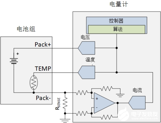 專用電流檢測放大器在測量小電流時更加準確。如果您的設計中已經有了微控制器(MCU)或電源管理集成電路(PMIC),那么您可以基于寫入MCU或PMIC的算法來使用這些放大器的輸出監測和測量電池使用次數和電池壽命。圖1顯示了一個帶有外部電流檢測放大器和控制器的電量計。